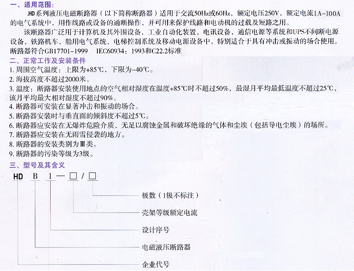 磁力液压电磁塑壳断路器