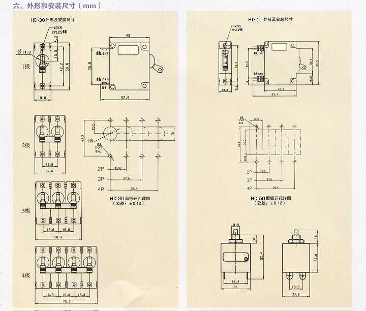 过载保护开关 插脚 HD-30系1P/16A磁力液压设备保护电磁式断路器